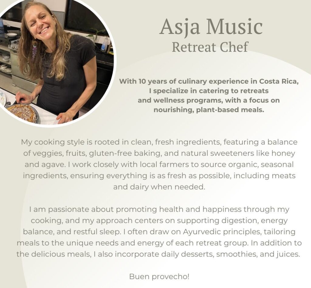 All you need to do is get here and surrender to the stunning surroundings of the Costa Rica mountaintop sanctuary with jungle views, ocean breezes, Chef Asja’s incredible food.