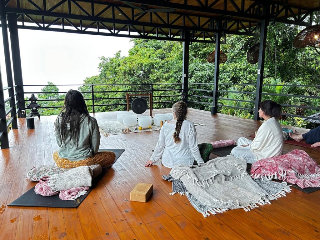 - Daily yoga, soundbaths, cacao ceremonies and practices for your embodiment